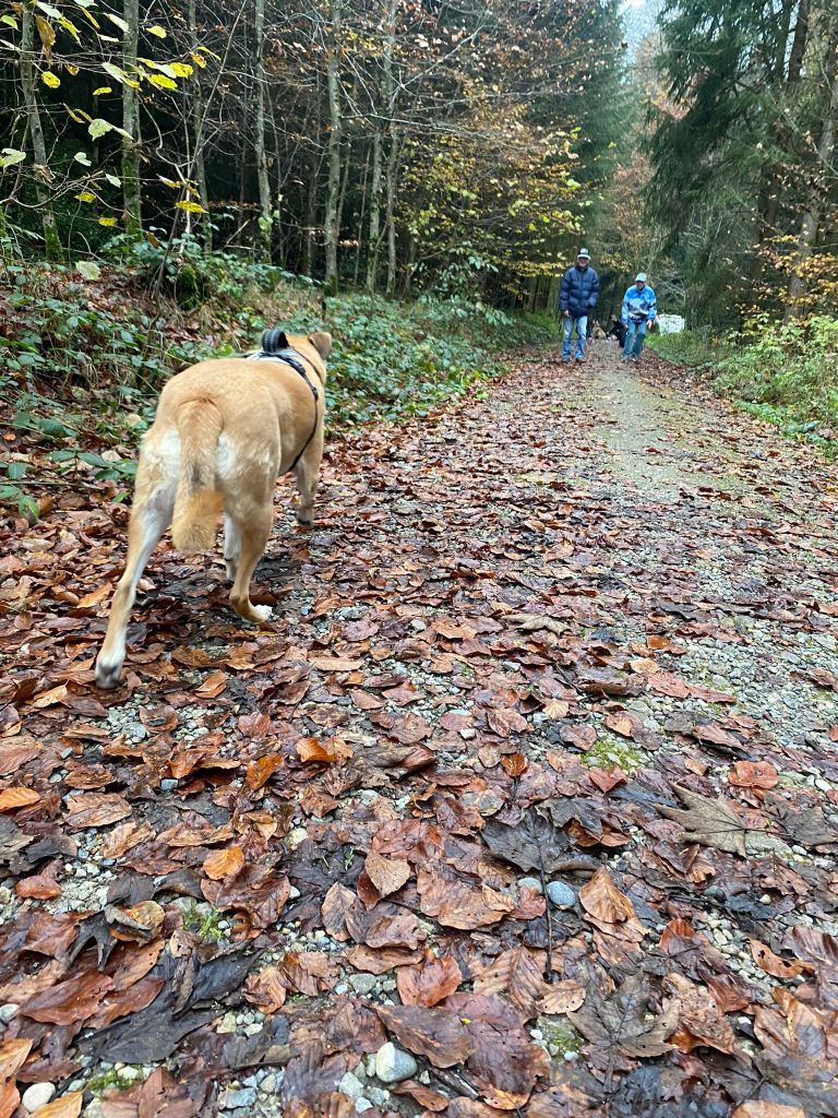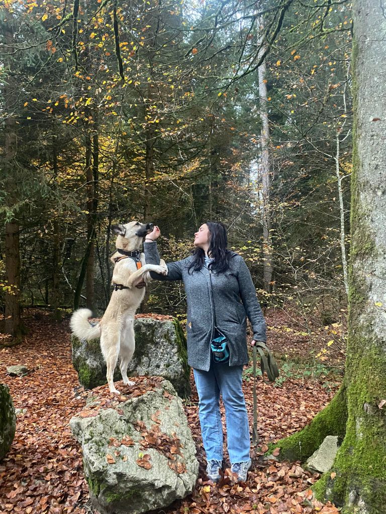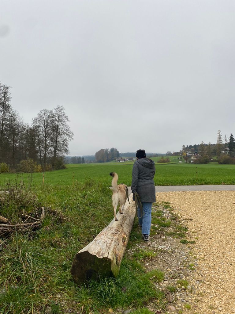 Dieses Mal haben wir einige Ideen erhalten, um Spaziergänge interessanter und abwechslungsreicher zu gestalten. Mit einfachen Elementen wie zum Beispiel den Hund über einen Stamm balancieren zu lassen, auf einen flachen Stein springen lassen oder den Slalom zwischen den Beinen hindurch zu machen, wird ein Spaziergang bereits Interessanter. Natürlich werden auch die Sinne des Hundes, wie etwa das Gleichgewicht, die Intelligenz und auch die Selbsteinschätzung, gefördert. Nun noch ein Paar Eindrücke für eure Augen.