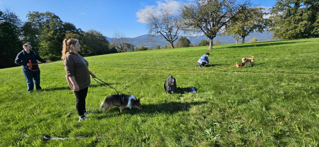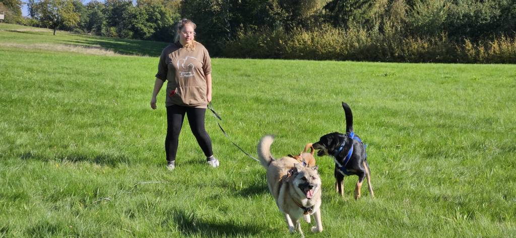Auf der Bornwiese angekommen, durften die Hunde dann immer zu Zweit miteinander herumrennen. Das hat vielen Hunden sehr Spass gemacht. Priscilla hat uns dann noch einige Punkte aufgezeigt, welche bei längeren Wanderungen mit dem Hund im Gebirge zu beachten sind.